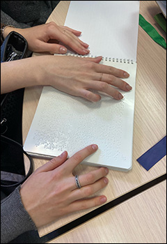 В рамках визита студенты встретились с психологом учреждения, Юлией Юрьевной Борисовой, которая провела для них практическое занятие на тему «Особенности работы с незрячими и слабовидящими». Студентам рассказали о важности инклюзивного подхода в образовании. Кроме того, им продемонстрировали методические материалы, используемые в работе с незрячими и слабовидящими, и рассказали о правилах взаимодействия с ними.