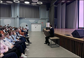 Цель встречи с учащимися – профориентационная беседа, которую провёл преподаватель кафедры Данила Ковалёв.