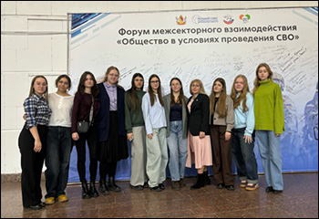 Студенты 2–4 курсов направления «Психолого-педагогическое образование» вместе с доцентом кафедры педагогики и педагогической психологии Ольгой Борисовной Мазкиной, посетили масштабный форум «Общество в условиях СВО», который состоялся 21 ноября во Дворце творчества детей и молодёжи.