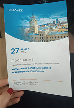 27 ноября сотрудники и студенты кафедры педагогики и педагогической психологии приняли участие в Межрегиональной научно-практической конференции «Комплексная психолого-психиатрическая, социальная и духовная помощь пациентам с психическими расстройствами в эпоху деглобализации», которая проходила на базе КУЗ ВО «ВОКПНД» для врачей-психиатров, врачей-психотерапевтов, медицинских психологов. В организационный комитет конференции вошла доцент кафедры педагогики и педагогической психологии, доктор психологических наук, заведующая патопсихологической лабораторией КУЗ ВО «ВОКПНД», главный внештатный специалист по медицинской психологии министерства здравоохранения Воронежской области Ларских Марина Владимировна. С докладами выступили представители практического здравоохранения и научно-исследовательских организаций России (Ростов-на-Дону, Москва, Воронеж и др.).