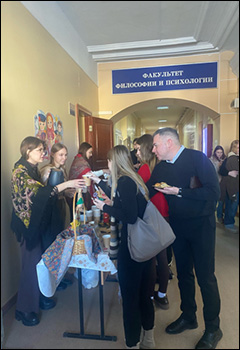 Но главное в этот день было даже не угощение, а единство. Студенты и преподаватели вместе подготовили настоящий пир горой: воздушные блины, кружевные блинчики, пышные оладушки, домашние пирожки и рассыпчатое печенье. Особенно активное участие в выпечке приняли преподаватели кафедры педагогики и педагогической психологии, доказав на личном примере, что традиции важны, а добрые дела объединяют поколения. Они не только поддерживают студентов на парах, но и с энтузиазмом включились в кулинарный марафон.